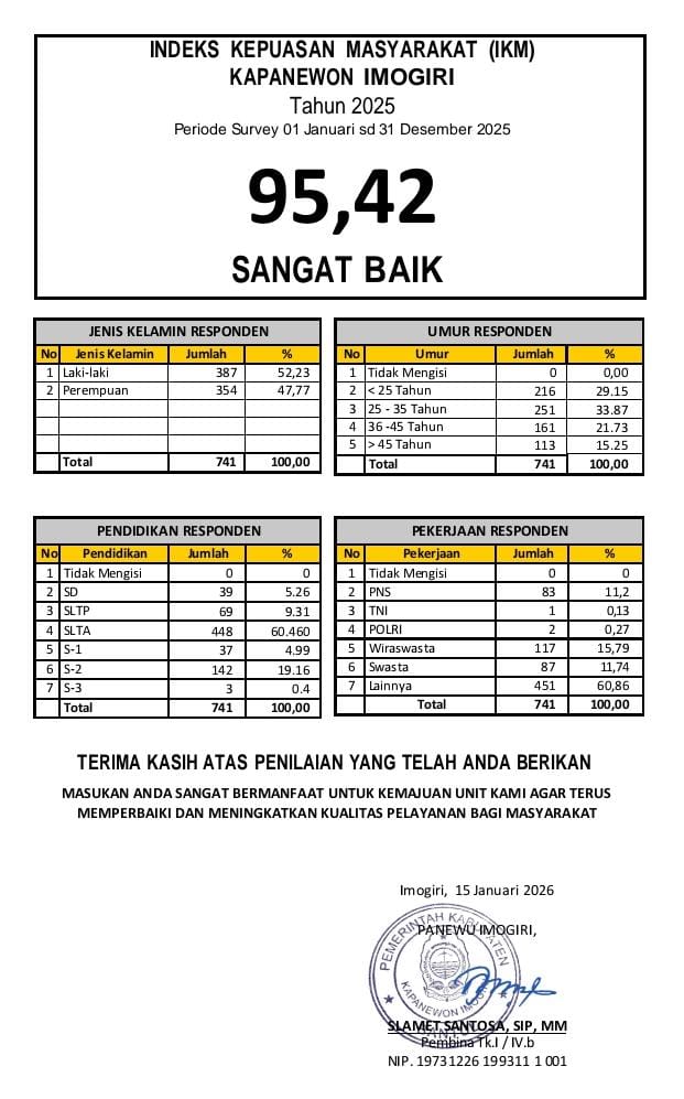 Laporan Survei Kepuasan Masyarakat Kapanewon Imogiri Tahun 2025